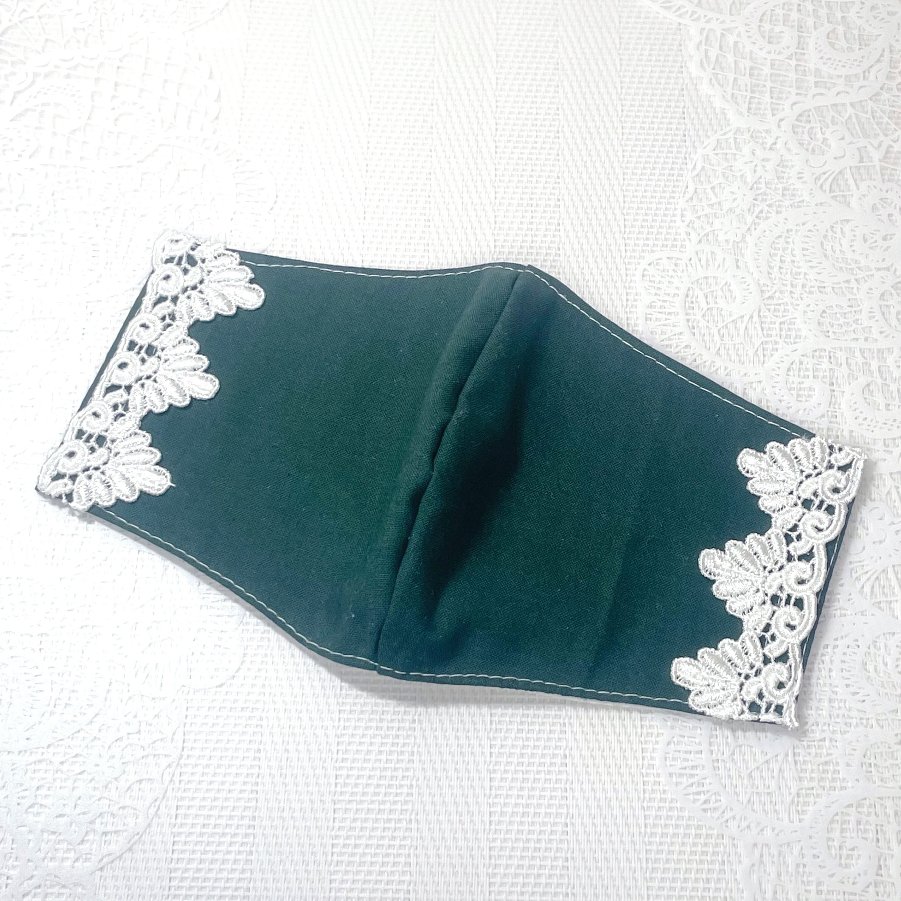 マスク ハンドメイド ハンドメイドマスク 平ゴム 手作り 立体 ガーゼ レース ケミカルレース 薔薇 大人かわいい 女性らしい 女性用 上品 レディース プリンセス 愛され 褒められ おしゃれ オシャレ 大人 かわいい 可愛い エレガント 華やか 洗える 春 綿 ホワイトデー ピーコック サイドレース ダークグリーン グリーン 緑